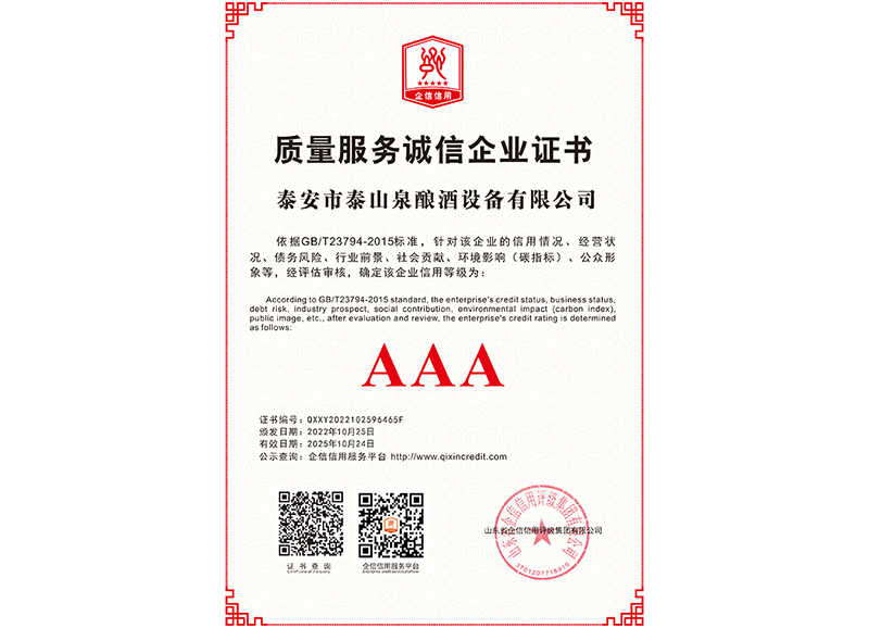 泰安市泰山泉釀酒設(shè)備有限公司,是一家專業(yè)從事釀酒設(shè)備機(jī)械化研發(fā)并集技術(shù)咨詢,工程設(shè)計(jì),制造安裝,人員培訓(xùn)及售后服務(wù)為一體的綜合性企業(yè),本公司主要產(chǎn)品為:大曲清香、小曲清香、大曲醬香、大曲濃香等香型白酒機(jī)械化設(shè)備?! ”竟九c中國(guó)科學(xué)院自動(dòng)化研究所簽訂技術(shù)服務(wù)合同,引進(jìn)先進(jìn)技術(shù),研究生產(chǎn)全自動(dòng)化機(jī)械釀酒設(shè)備,由中國(guó)科學(xué)自動(dòng)化研究所的技術(shù)支持,打造最先進(jìn)的生產(chǎn)釀酒設(shè)備,公司有信心打造全國(guó)最先進(jìn)白酒...
